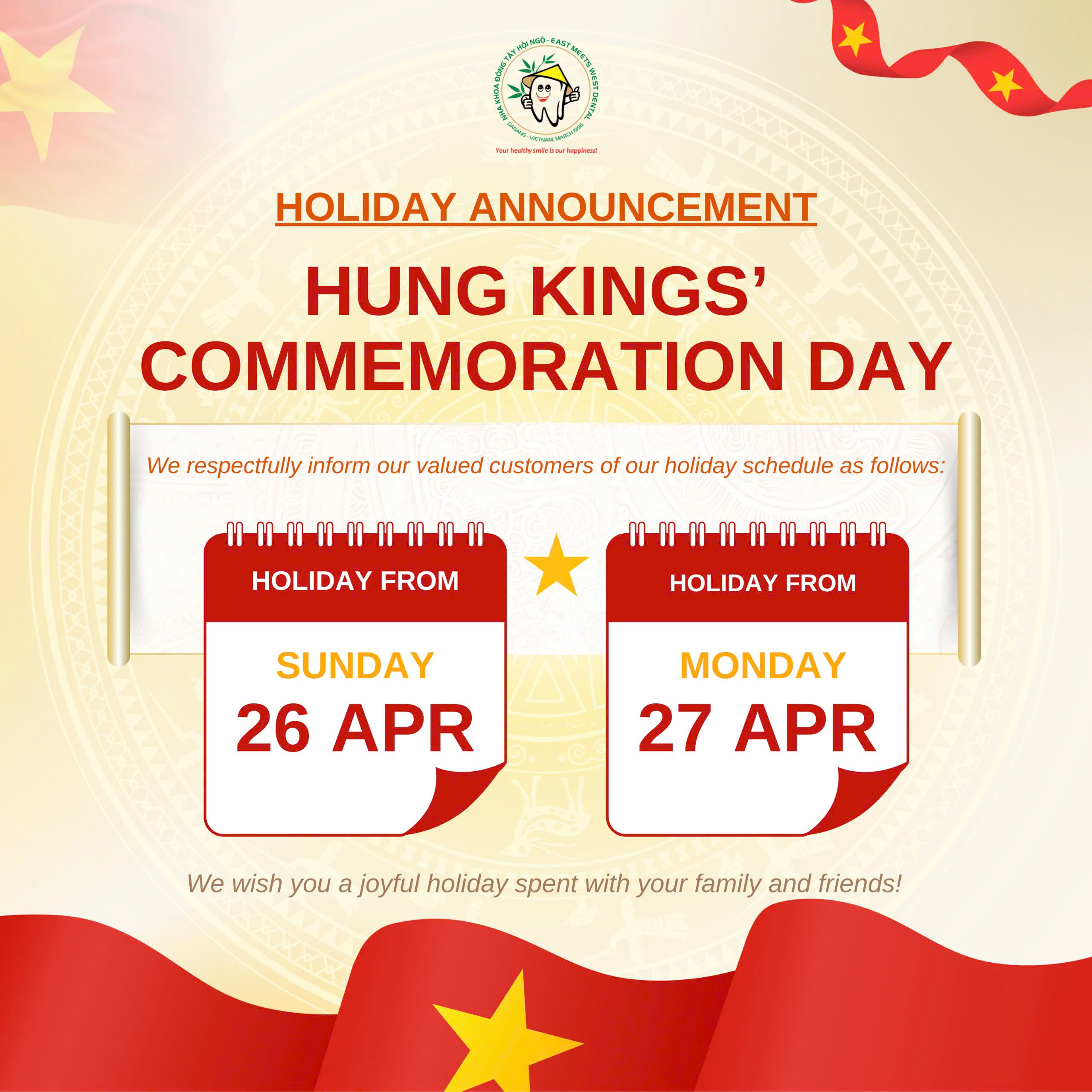 EMW Dental respectfully informs you of our holiday schedule for Hung Kings’ Commemoration Day as follows: